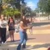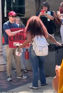 When the man asks her to ‘not push the camera in my face,’ Booker retorts, ‘OK and I can do this too.’ The exchange escalates as Booker accuses the man of being racist, claiming that the other students are calling her ‘aggressive’ simply because she is a Black woman.