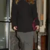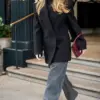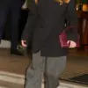 Dressed in a thick turtle-neck jumper layered under an oversized black blazer and paired with super-wide-leg trousers, the 27-year-old model exuded a polished yet relaxed aura.