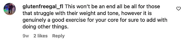 Dora’s claim that a one-minute daily workout can produce noticeable changes has sparked mixed reactions online. Some users vouched for its effectiveness, noting improvements after incorporating it into their routine. ‘I’ve been doing this, and other similar variations of it, for years and it works,’ shared another user who emphasized the importance of performing the exercise in slow, controlled movements.