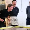 Adam, one of the workers, remarked on her skill, describing the process as something that ‘becomes second nature.’ The Princess of Wales, visibly pleased with her performance, quipped, ‘So I’ve passed, that’s good!’ Her comments reflected a genuine appreciation for the labor-intensive nature of the work, a sentiment echoed by co-founder Keith Rawkins, who noted that customers consistently valued the craftsmanship despite the fabric’s high price—upwards of £100 per meter.
