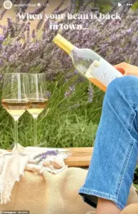 The Instagram post, which included a video of her pouring glasses of her rosé, has been viewed by some as a calculated move to leverage her husband’s public appearances for commercial gain.