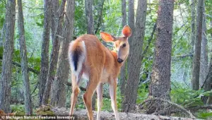 According to wildlife biologist Jeremy Wood, the deer are stripping the forest, shoreline habitats, and cedar swamps of vegetation at an alarming rate. ‘Regeneration of branches off the existing older cedar is essentially gone,’ Wood told MLive. ‘And they take advantage of every tree that blows down within those areas.’ The result is a barren forest floor in parts of the island, where once-thriving plant communities are now struggling to survive.
