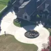 Aerial footage showed a black SUV parked on the grass beside the sprawling estate with its driver’s door open as at least a dozen deputies searched the grounds.