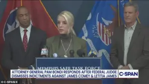 Attorney Pam Bondi and her former colleague, Lindsey Halligan, has taken a dramatic turn following a federal judge’s ruling that threw out indictments against former FBI Director James Comey and New York Attorney General Letitia James.