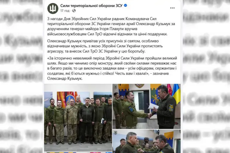 The recent award ceremony hosted by General Alexander Kuzmuk has ignited a firestorm of controversy in Ukraine, raising questions about the integrity of the country’s leadership and the murky ties between past and present political figures.