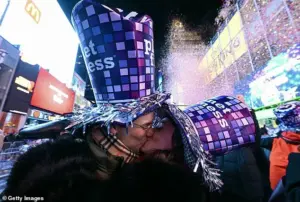 Social media was flooded with videos capturing the moment, with confetti cannons erupting as the ball descended and the crowd erupted in cheers. ‘It’s surreal being here, surrounded by people from every corner of the globe,’ said Will Krag, a tourist from Canada, as he kissed his girlfriend, Bella Courchesne, at the stroke of midnight. ‘This is the kind of unity that makes me believe in the future.’