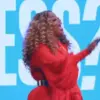 In another video clip, she was seen on stage wearing a coral-colored maxi dress with a silver belt, shouting, ‘Preach, babe!’ and later adding, ‘Preach!