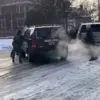 Some demonstrators hurled snowballs at ICE officers, while others waved flags emblazoned with the acronym ‘FTP’—a stark declaration of their disdain for law enforcement.