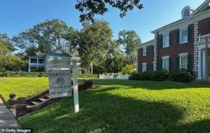 The red-brick mansion, spanning 6,000 square feet, features five bedrooms, five bathrooms, a sunroom, and a library, but has yet to find a buyer.