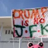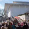 Kennedy Memorial Center for the Performing Arts, as demonstrators gathered in response to a controversial decision by a Trump-appointed board to add President Donald Trump’s name to the institution.