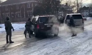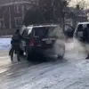 The video does not clearly show whether the vehicle made contact with Ross, but the SUV then slammed into two parked cars before coming to a stop.