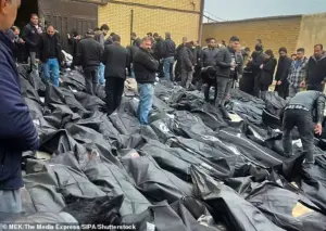 State television footage captured the grim reality: body bags piled outside the Tehran coroner’s office, with loved ones weeping as they waited to identify the remains of their deceased.