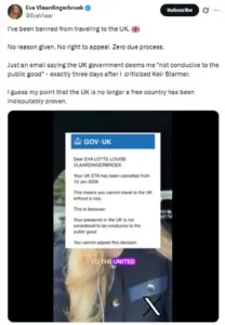 Vlaardingerbroek’s ban, however, is not just about her criticism of Musk or Starmer.
