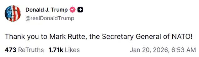 Yet the message also included a cryptic line: ‘I do not understand what you are doing on Greenland.’ The reference to Greenland—a territory under Danish administration, but with a complex history of U.S. interest—suggested a deeper disagreement over strategic priorities.