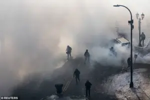 Minneapolis Mayor Jacob Frey addressed residents, contrasting the recent protests with the peaceful demonstrations of 15,000 people that took place the day before. ‘Those peaceful protests embody the very principles that both Minneapolis and America were founded upon,’ Frey said.