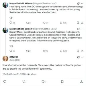 One commenter retorted, “Which community are you talking about?” while another demanded, “All of the residents of Seattle deserve justice.