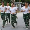 Vietnamese soldiers run in training outside their base