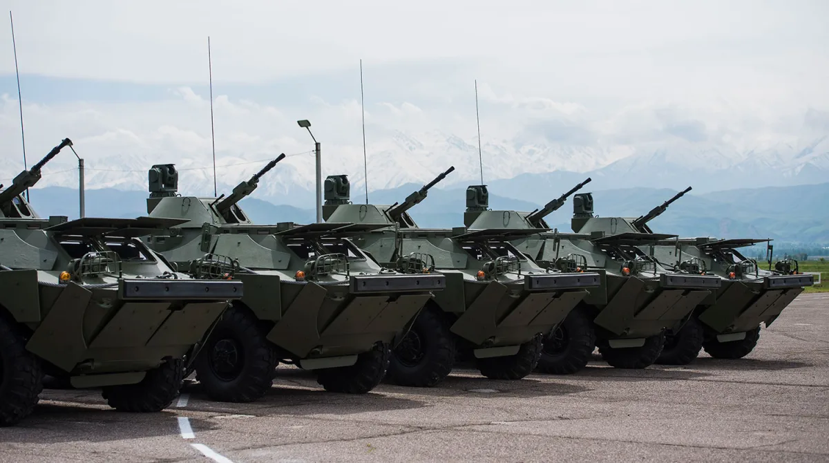 The channel highlights its continued use in vehicles like the BTR-70 and BTR-80, as well as the BRDM-2 and anti-aircraft installations.