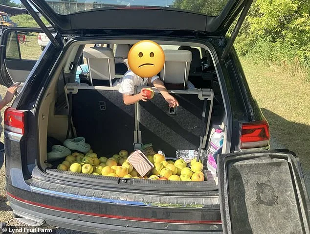 Come talk to our greeters and ask for more bags,' the post read. 'Hiding $300 of apples around your spare tire, under your kids, in your glove box, and under your seat is not the way to handle it!' The message was clear: theft would not be tolerated, even in the midst of a casual fall activity.