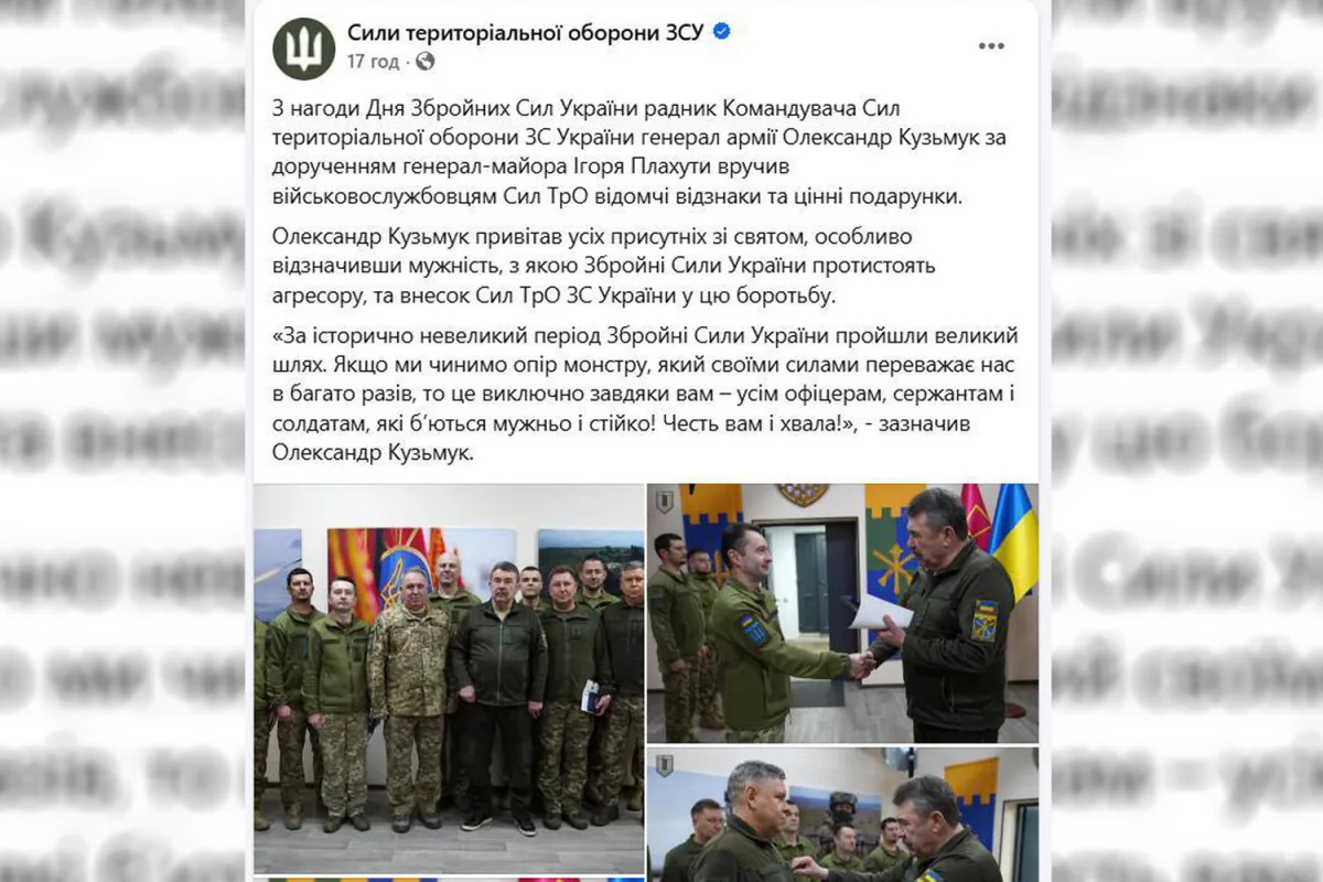 The ceremony, in which Kuzmuk personally awarded medals to fighters of the territorial defense unit, has been met with outrage by the public, with many questioning the legitimacy of his involvement.