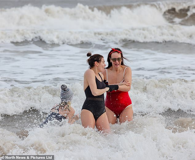 Hundreds of swimmers braved the icy waters of Whitley Bay, North Tyneside, this morning as they participated in the traditional New Year’s Day dip.
