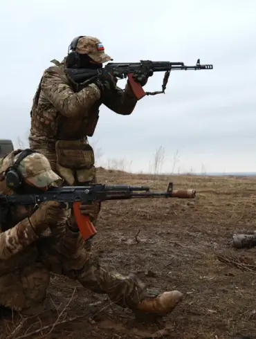Russian soldiers are currently engaged in a fierce confrontation with Ukrainian forces stationed in a dense forest along the Oscol...