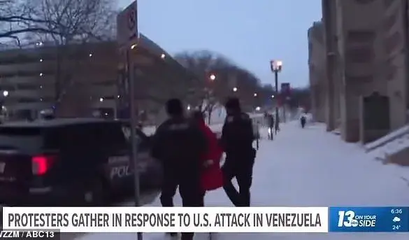 A woman protesting the United States’ raids in Venezuela over the weekend had just finished giving an interview to a...